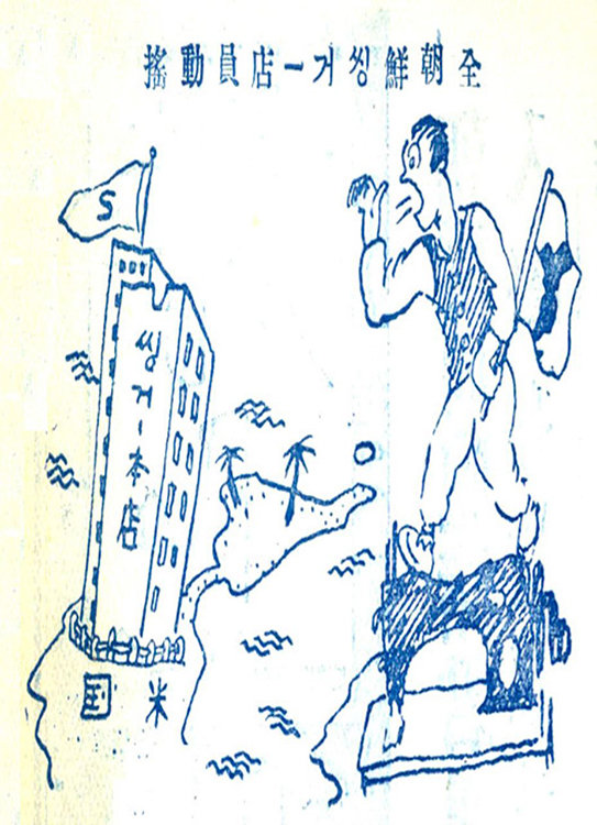 그래서 이 만평은 더 의미심장하다.여성의 일손을 덜어주는 선진국의 첨단 기계를 팔던 사람들도 정작 자신들은 임금 삭감과 처우 문제 앞에서 집단으로 맞서야 했다.근대의 상징이자‘머스트 해브 아이템’인 재봉틀을 팔던 조선인 점원들 또한 차별과 긴장,저항의 한복판에 서 있었음을 보여준다.웃음거리처럼 보이는 이 그림 한 장에는 식민지 조선 노동자의 불안한 현실이 숨어 있다.