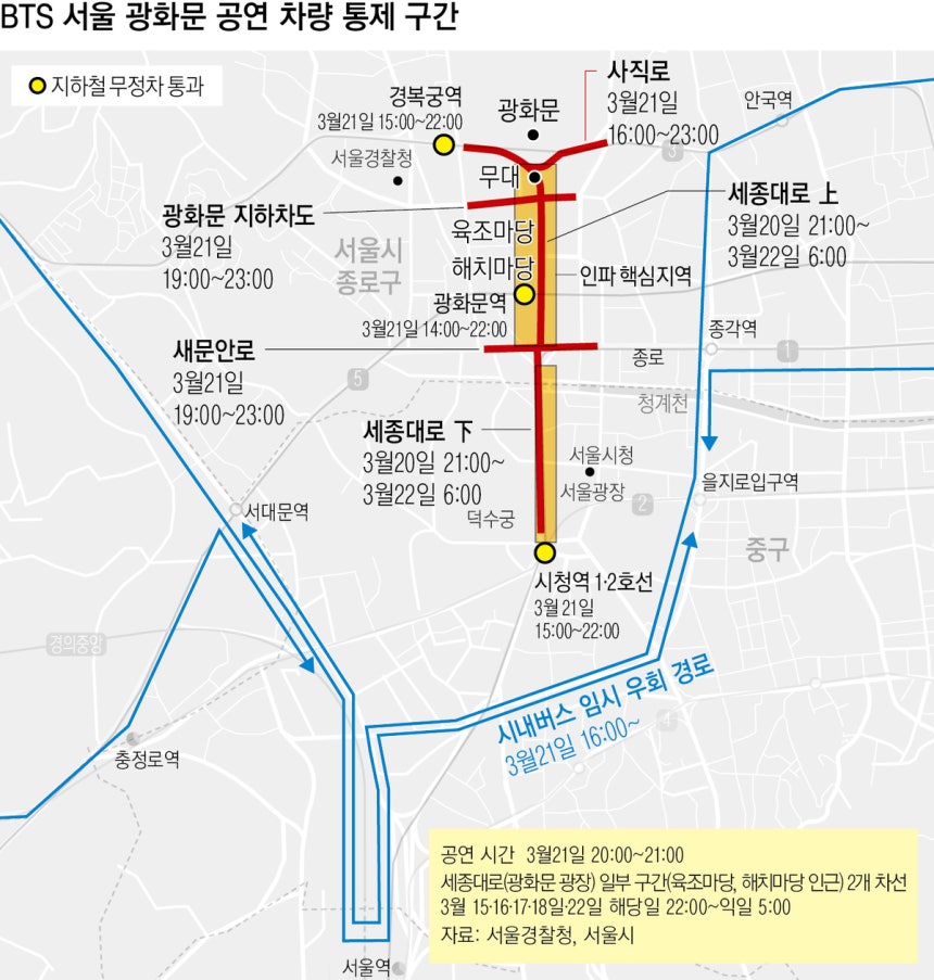 공연 당일 세종대로 등 인근 도로 교통을 통제하는데,토토 라이브스코어인파 밀집 징후가 나타날 경우 통제 시점이 앞당겨질 수 있다.경찰은 대중교통 이용을 권고했다.