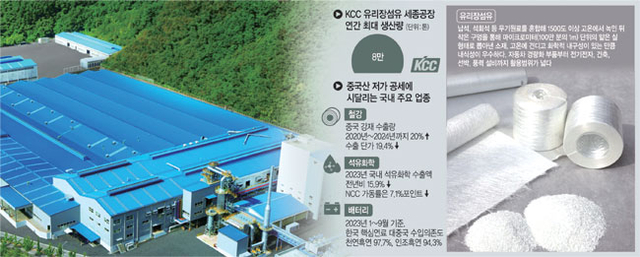 정부 지원을 등에 업은 중국산 저가 공세에 시달리면서 3년간 약 1000억 원 적자를 냈던 KCC 유리장섬유 세종공장이 이달 말 가동을 중단한다.국내 유일 유리장섬유 토종기업 생산시설인 이곳이 문을 닫게 되면 중국의 가격 정책에 휘둘릴 수밖에 없게 될 것으로 보인다.2021년 중국의 수출 중단 조치로 국가적 대란에 빠질 뻔한‘요소수’사태가 재현될 수 있다는 우려도 나온다.