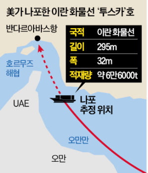 미국 중부사령부는 이날 이란으로 향하던 화물선 투스카호를 함포 사격한 뒤 나포했다고 밝혔다.이 배는 중국에서 출항해 이란 반다르아바스로 가던 중이었다.미국은 이란의 호르무즈해협 봉쇄에 대응해 이란으로 오가는 선박을 막는 등 해상을 봉쇄하고 있다.